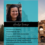 Valoración general de la experiencia: La experiencia de la Staff Week en la Universidad de Trieste ha sido muy positiva. Más allá de los aprendizajes técnicos y las buenas prácticas profesionales adquiridas, la valoración es excelente porque el ambiente de trabajo con un grupo reducido de 25 participantes facilitó una interacción constante, lo que me permitió establecer una red de contactos sólida no solo profesional, sino también personal. En cuanto a la motivación ver cómo otras instituciones abordan los desafíos de la internacionalización me dio nuevas ideas. En resumen, creo firmemente que la movilidad ha cumplido su objetivo y que me ha aportado mucho, tanto a nivel profesional, como a nivel personal.