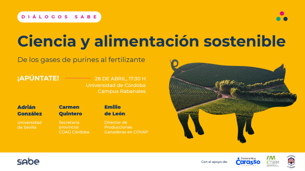 La gestión de los residuos ganaderos y su potencial como recurso para la agricultura, uno de los grandes retos del sistema agroalimentario, centrarán el encuentro ‘De los gases de purines al fertilizante’, que tendrá lugar el próximo 28 de abril en el Campus de Rabanales de la Universidad de Córdoba. El encuentro se enmarca en los Diálogos SABE, un espacio que reúne a personal investigador y otros actores de la cadena alimentaria para impulsar un cambio hacia una alimentación más sostenible, y la inscripción puede realizarse en este enlace.