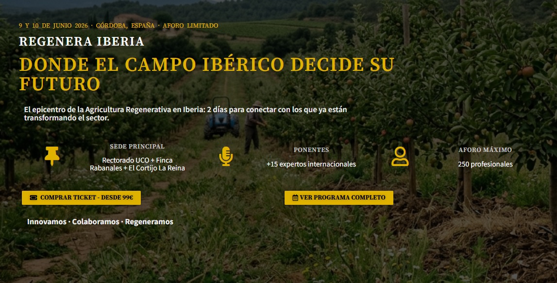REGENERA IBERIA 2026 es la respuesta técnica a esa pregunta. No un evento de divulgación. Un foro de dos días de trabajo real donde los que ya lo están haciendo comparten sus datos, sus errores y sus resultados. Donde el campo ibérico decide su futuro.