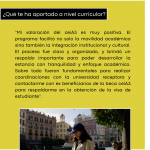 ¿Qué valoración harías sobre el ceiA3? Mi valoración del ceiA3 es muy positiva. El programa facilitó no solo la movilidad académica sino también la integración institucional y cultural. El proceso fue claro y organizado, y brindó un respaldo importante para poder desarrollar la estancia con tranquilidad y enfoque académico. Sobre todo fueron fundamentales para realizar coordinaciones con la universidad receptora y contactarme con ex beneficiarios de la beca ceiA3 para respaldarme en la obtención de la visa de estudiante.