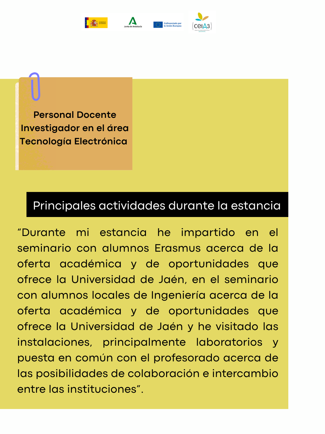 Área de formación (PDI): Tecnología Electrónica de la Universidad de Jaén.