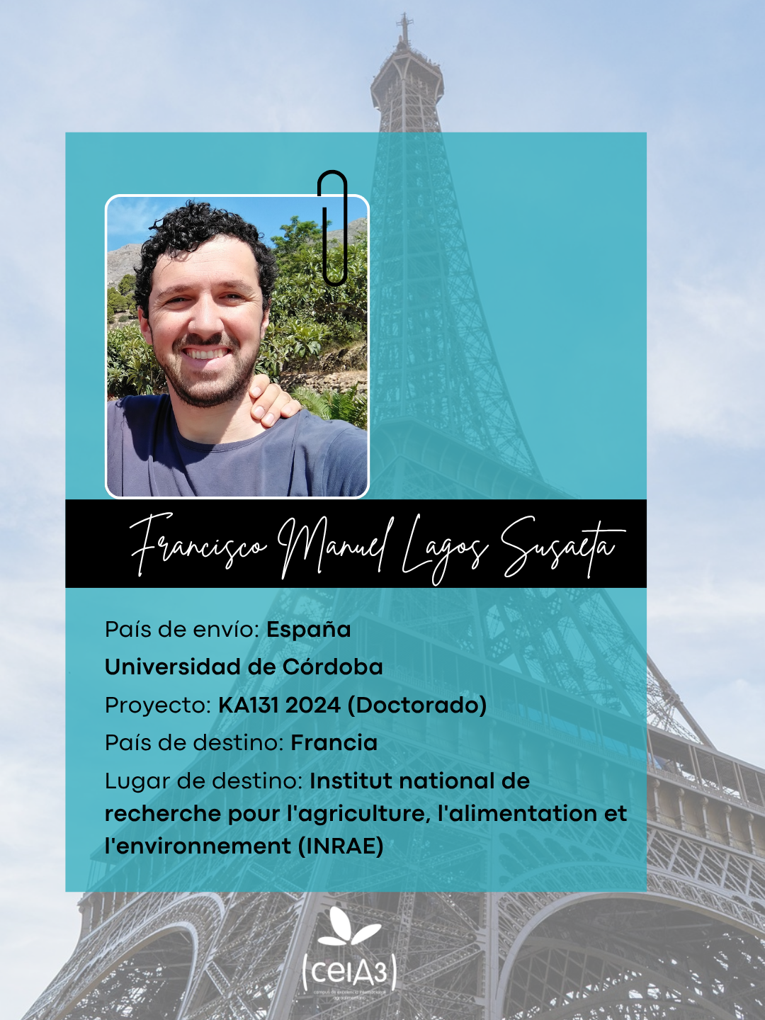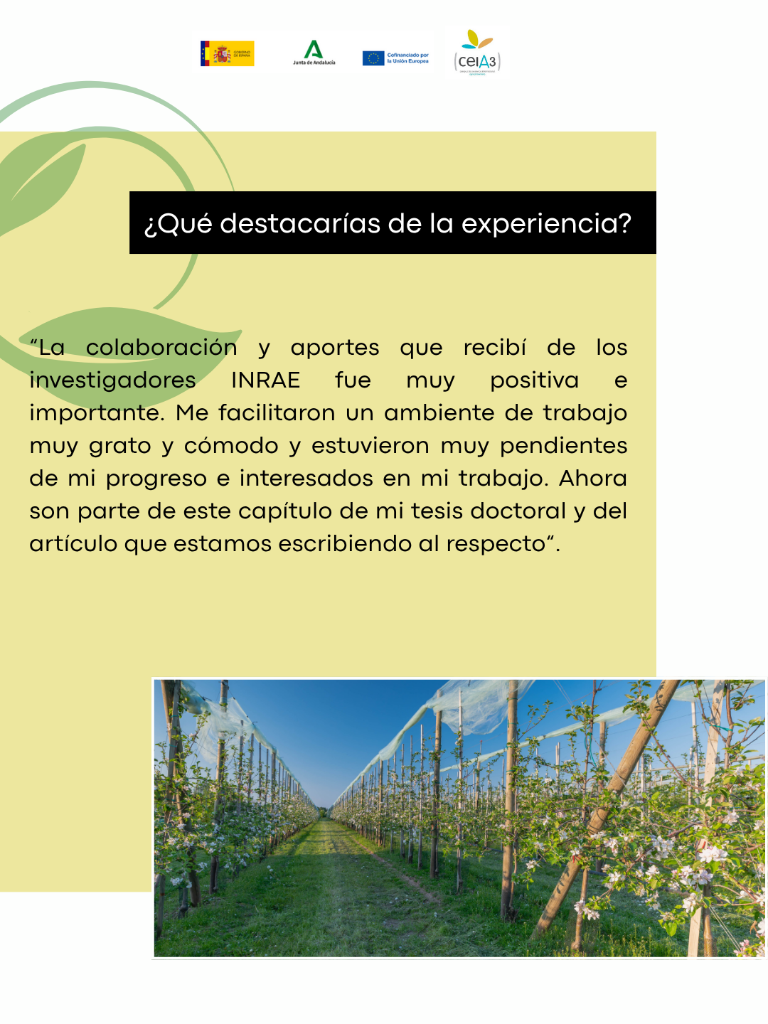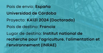 ¿Qué destacarías de la experiencia? La colaboración y aportes que recibí de los investigadores INRAE fue muy positiva e importante. Me facilitaron un ambiente de trabajo muy grato y cómodo y estuvieron muy pendientes de mi progreso e interesados en mi trabajo. Ahora son parte de este capítulo de mi tesis doctoral y del artículo que estamos escribiendo al respecto.