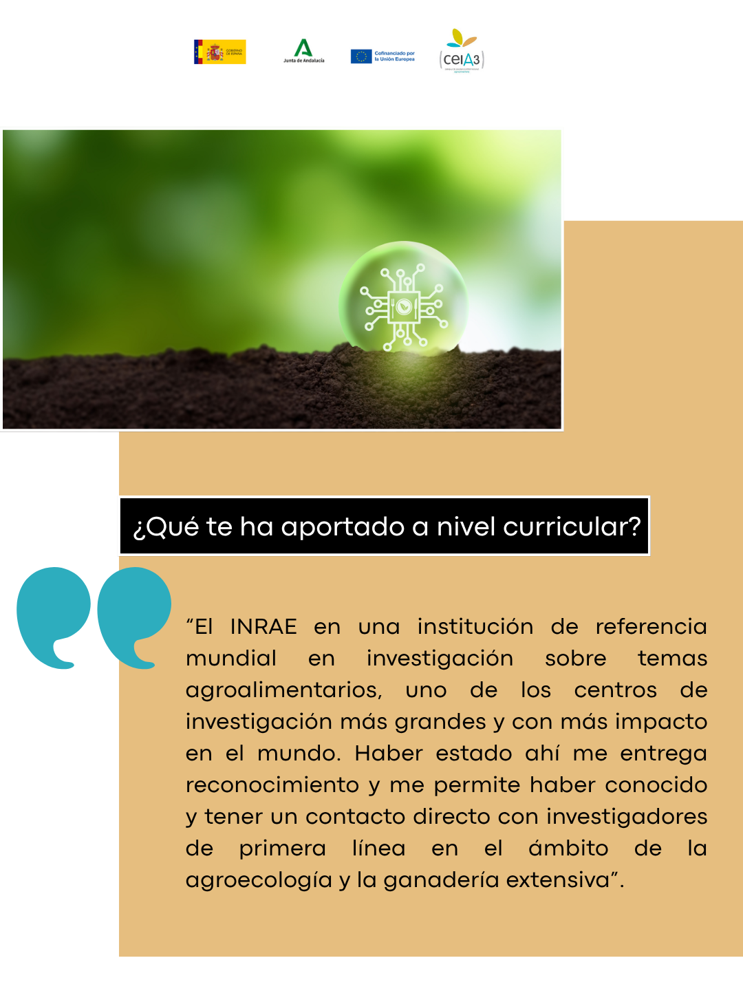 ¿Qué te ha aportado a nivel curricular? El INRAE en una institución de referencia mundial en investigación sobre temas agroalimentarios, uno de los centros de investigación más grandes y con más impacto en el mundo. Haber estado ahí me entrega reconocimiento y me permite haber conocido y tener un contacto directo con investigadores de primera línea en el ámbito de la agroecología y la ganadería extensiva.