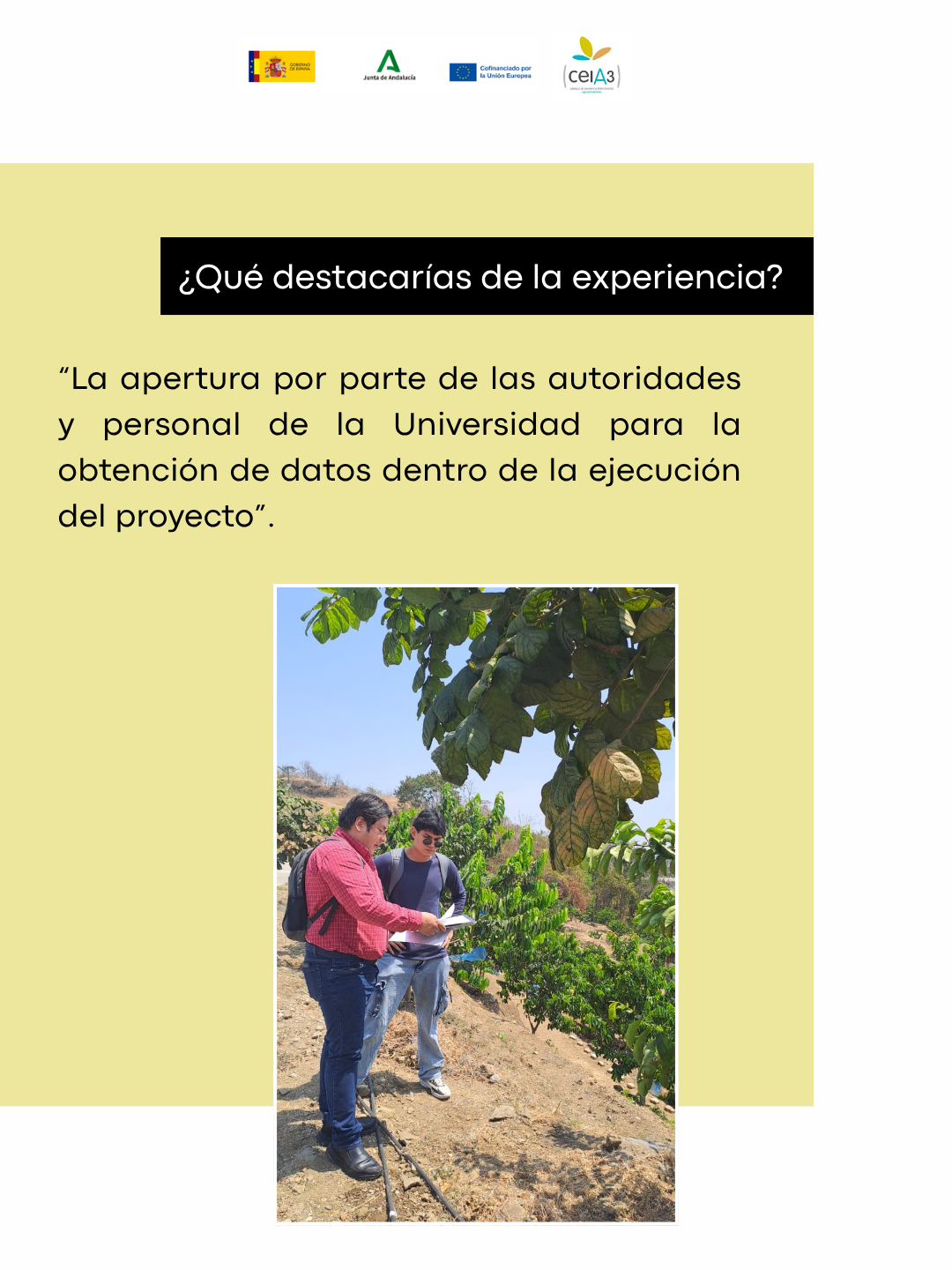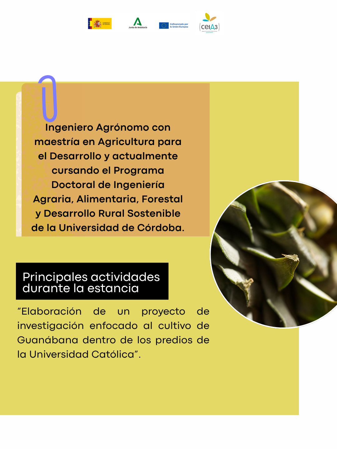 Ingeniero Agrónomo con maestría en Agricultura para el Desarrollo y actualmente cursando el Programa Doctoral de Ingeniería Agraria, Alimentaria, Forestal y Desarrollo Rural Sostenible de la Universidad de Córdoba