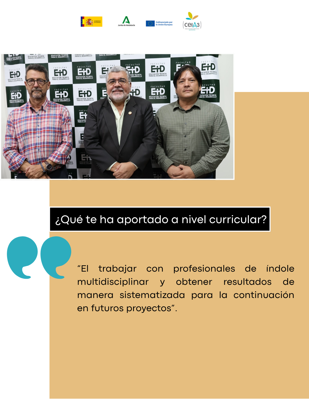 ¿Qué te ha aportado a nivel curricular? El trabajar con profesionales de índole multidisciplinar y obtener resultados de manera sistematizada para la continuación en futuros proyectos.