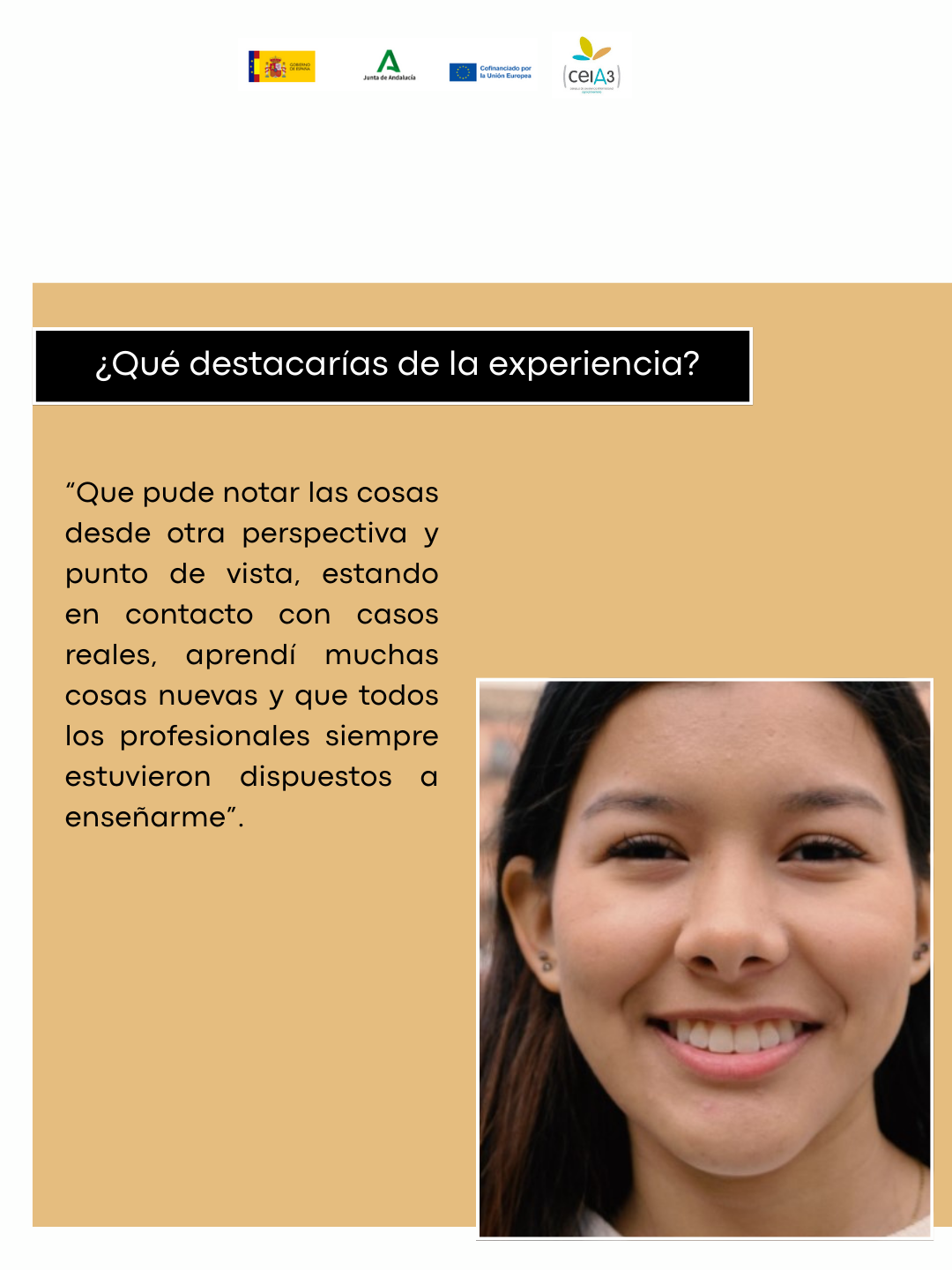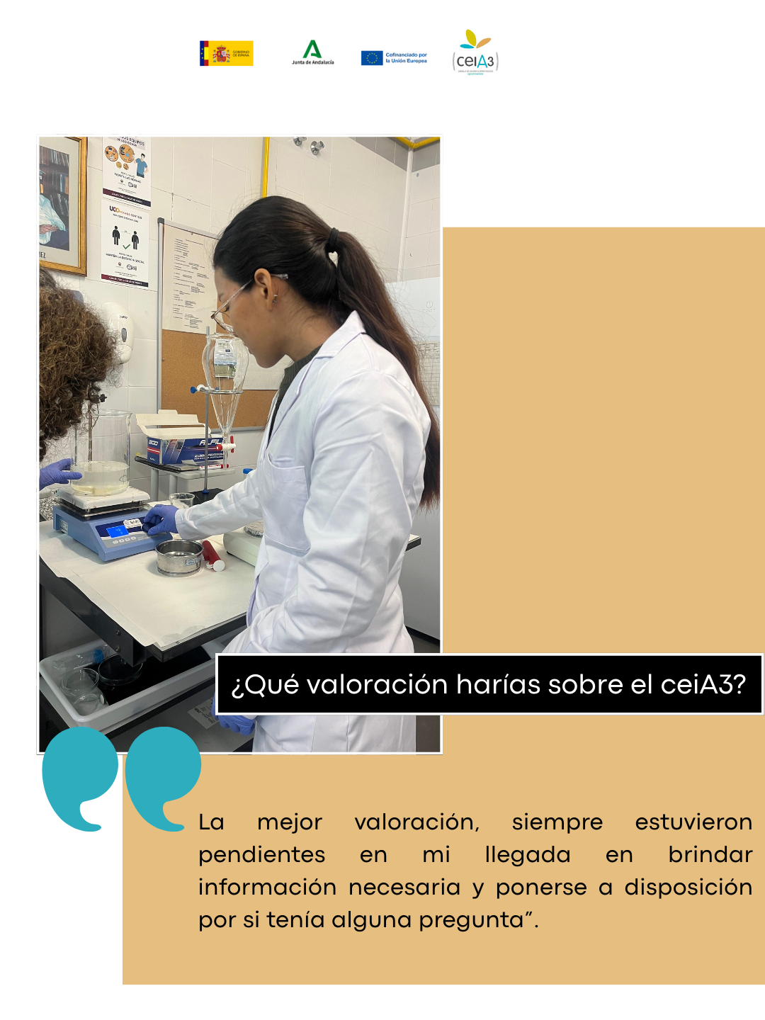 ¿Qué valoración harías sobre el ceiA3? La mejor valoración, siempre estuvieron pendientes en mi llegada en brindar información necesaria y ponerse a disposición por si tenía alguna pregunta.