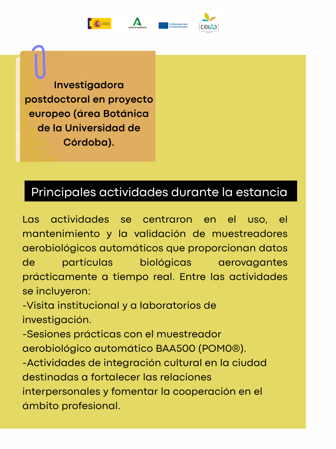 Investigadora postdoctoral en proyecto europeo (área Botánica de la Universidad de Córdoba)