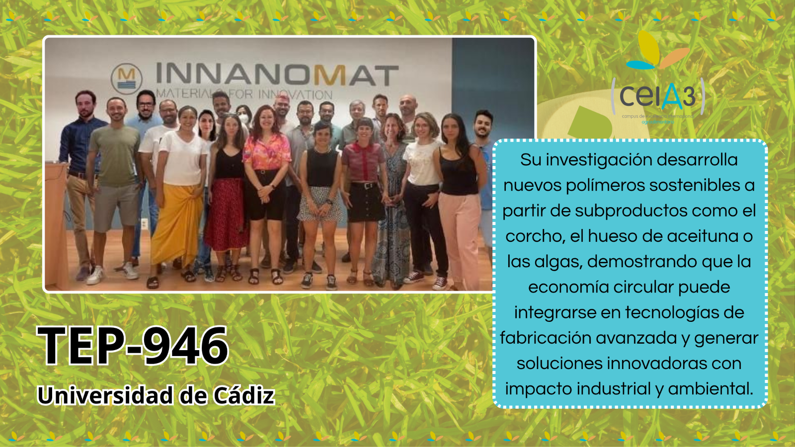 TEP-946 (UCA) apuesta por la economía circular al desarrollar materiales innovadores a partir de corcho, algas y hueso de aceituna